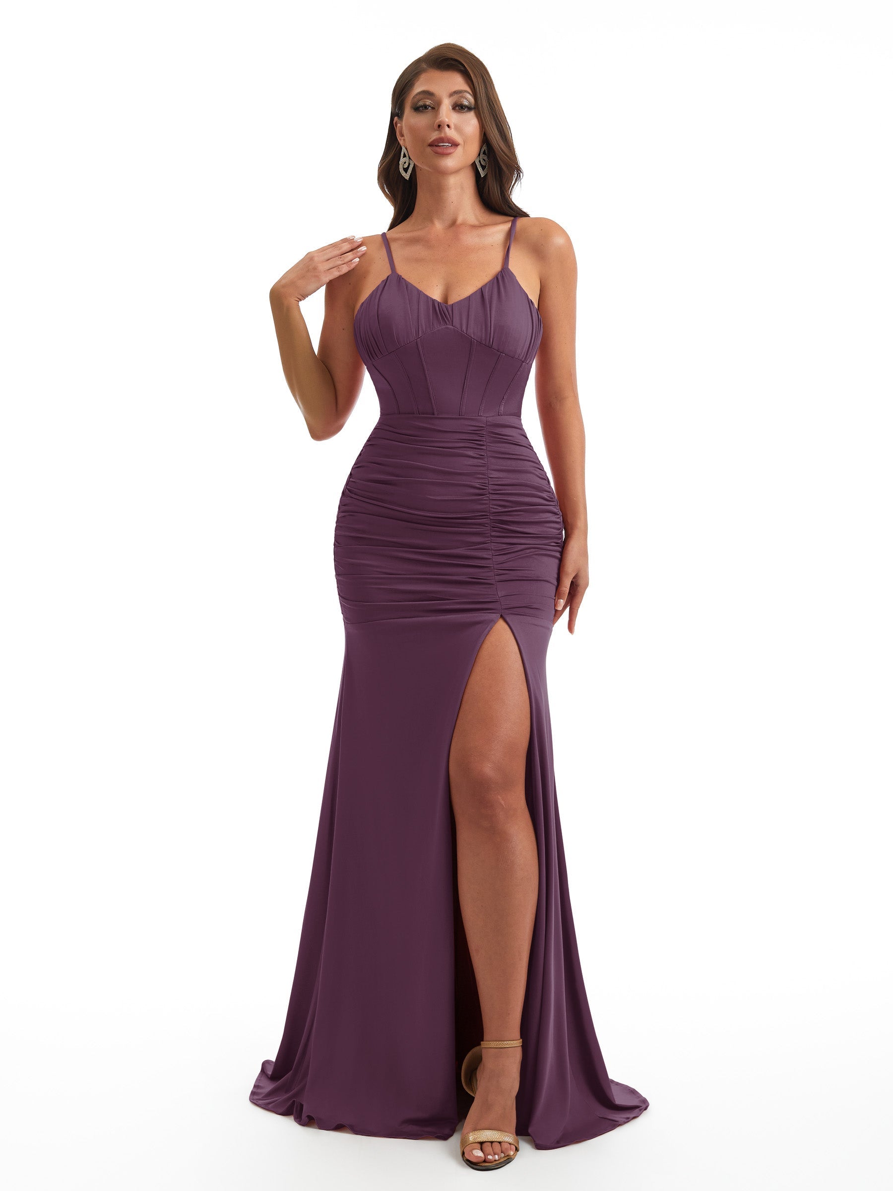 Grape leans dark and saturated, with a depth that feels serious but not heavy. It avoids the softness of lavender and the formality of plum, landing somewhere more modern. If you're planning for the go to the celebration asking for formal wearing, VowSatin grape guest dresses will fit the bill.