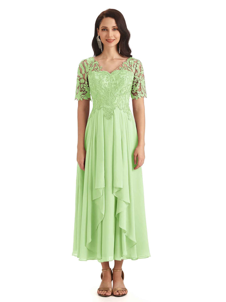Stand up straight and measure from the the center of the collarbone,down to where the hem of the dress should hit(excluding any train).