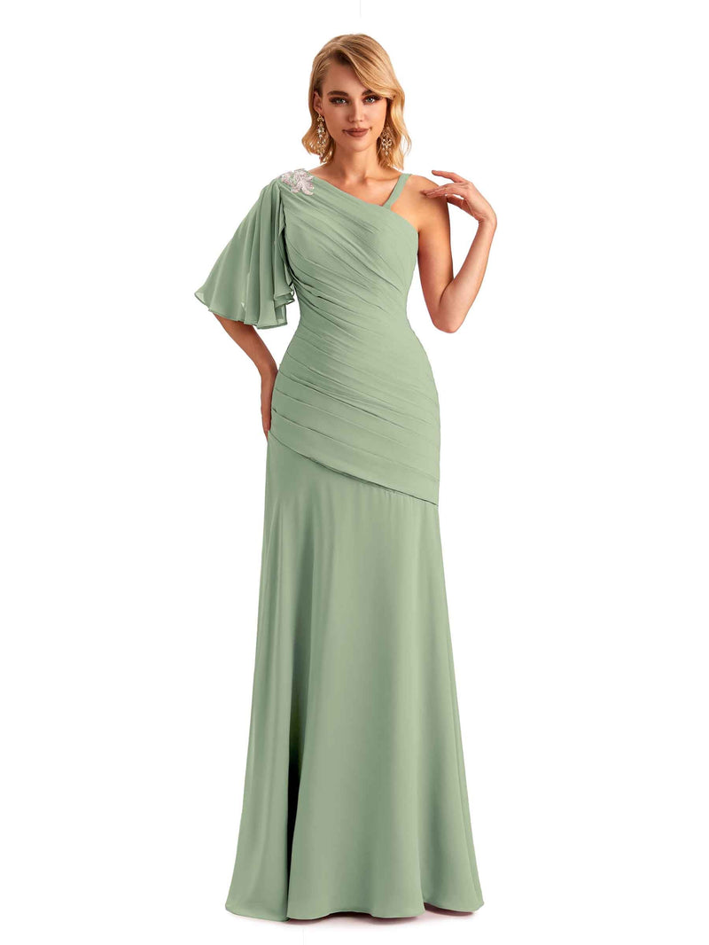 One-Shoulder Chiffon Dress-Dusty Sage