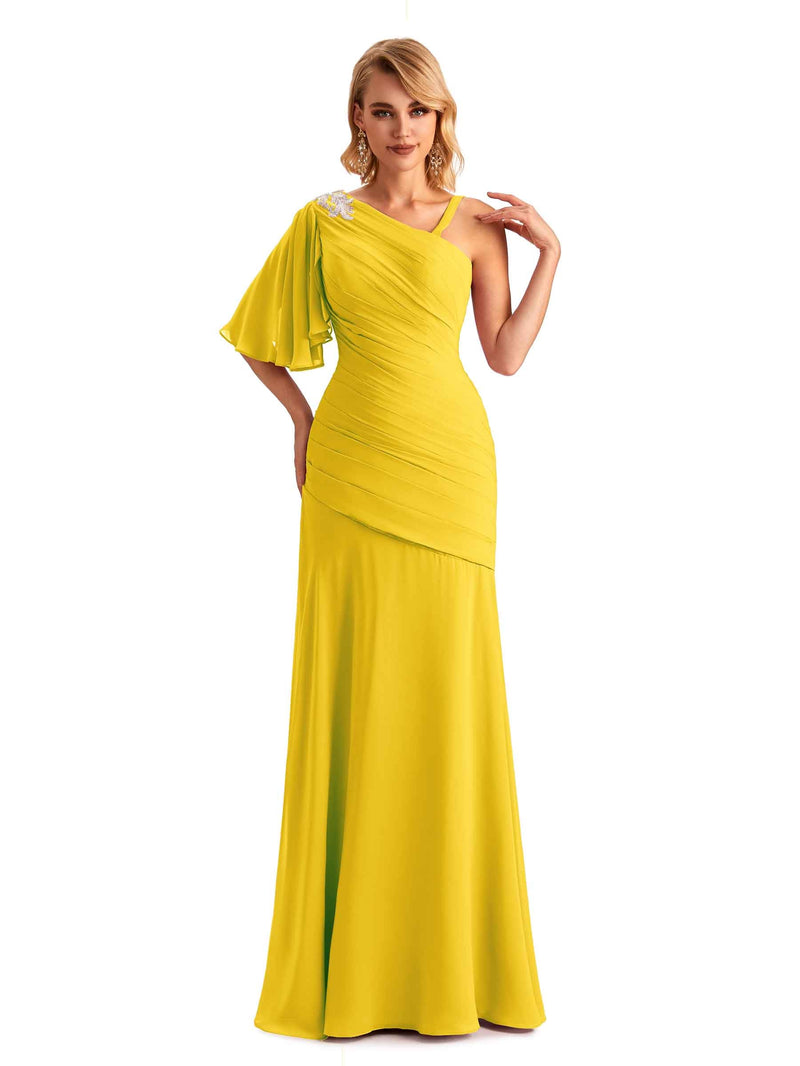 One-Shoulder Chiffon Dress-Marigold