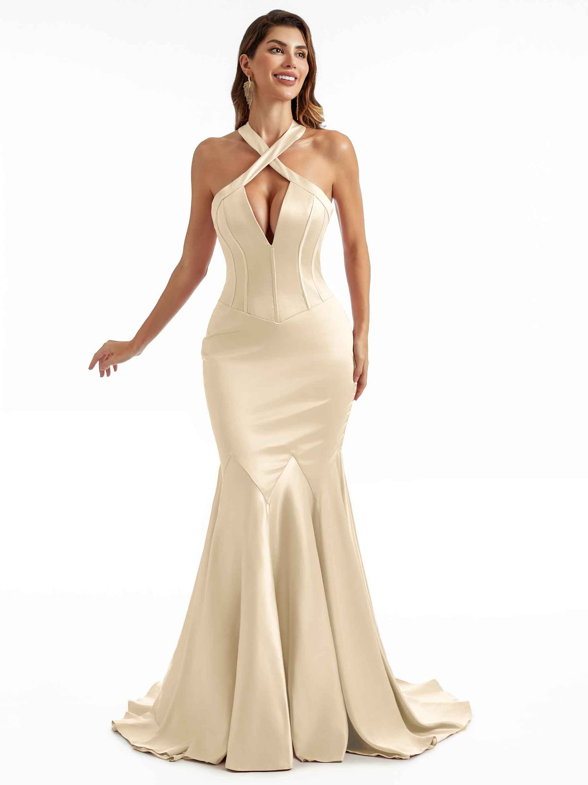 Halter Satin Dress-Champagne