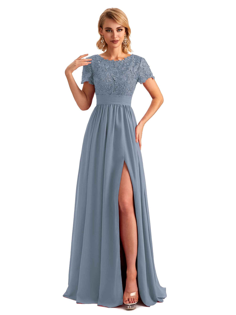 Short Sleeves Chiffon Dress-Dusty Blue